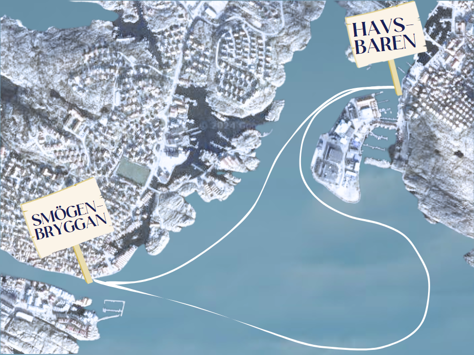 Elbåten avgår alla dagar från Havsbaren i Kungshamn hel och halv timma och från Aqua Event Smögenbryggan kvart i och kvart över. Vid köbildning kör vi utan att vänta in avgångstid. På vägen tillbaka till Kungshamn kör vi en liten extra sväng och visar den makalösa prestandan i båten. Båten tar 10 gäster och alla lånar flytväst.