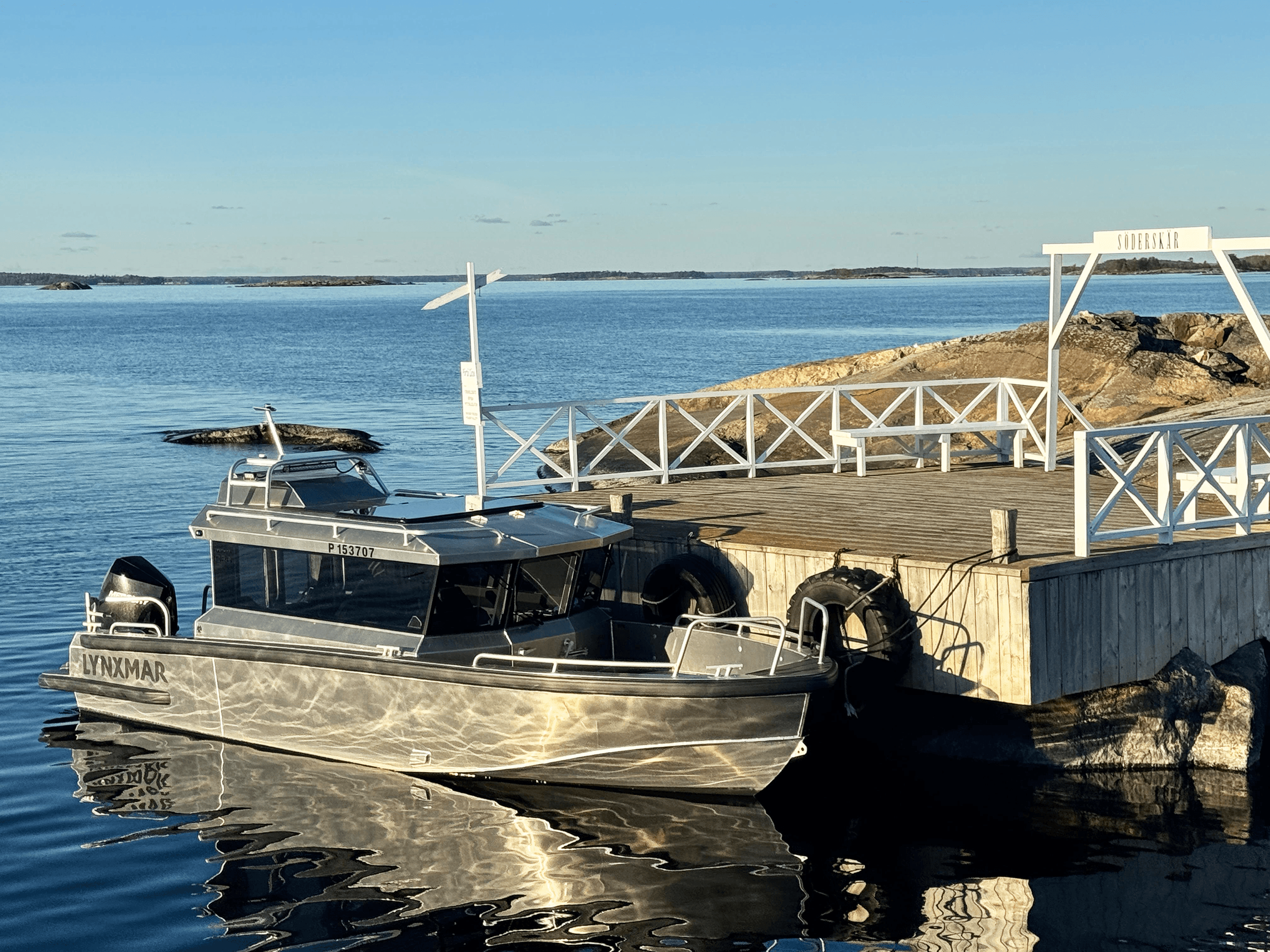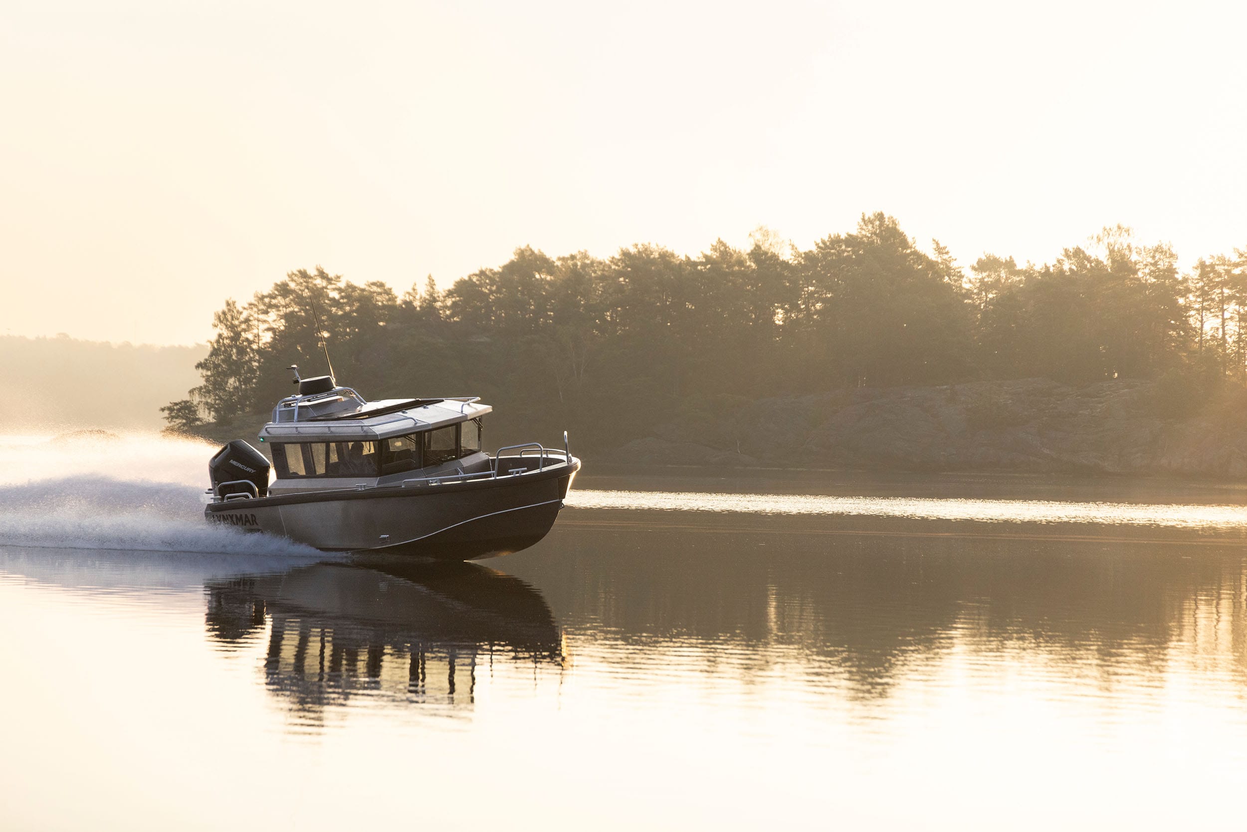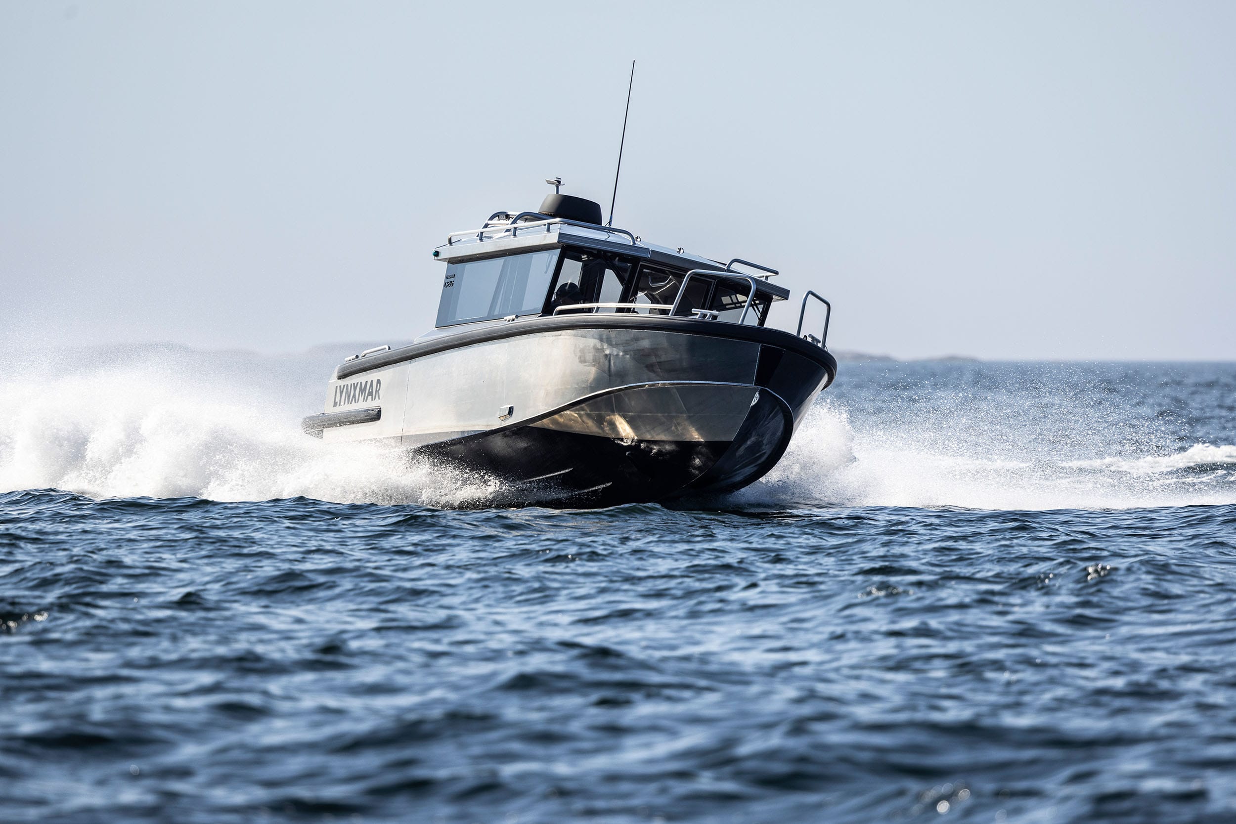 Lynxmar C26 är en kombination av styrka och genomtänkt design. Skrovet är helsvetsat i marinaluminium och fyllt med cellplast för extra säkerhet, vilket gör båten osänkbar och ger en tystare gång. Hydrodynamiken är optimerad med CFD-simuleringar för stabilitet och effektivitet i grov sjö. Runt hela båten löper en kraftig fenderlist på 125 mm som skyddar vid tuffa förhållanden. Akterdäcket är rymligt och lättillgängligt, med en stor plattform för enkel ombordstigning. Funktioner som soltak i fullbredd, öppningsbar framdörr i två delar och stora skylights ger ljus och ventilation. Motoralternativ upp till 425 hk ger imponerande prestanda, och med bogpropeller och ankarspel som standard är manövreringen enkel även i trånga hamnar.