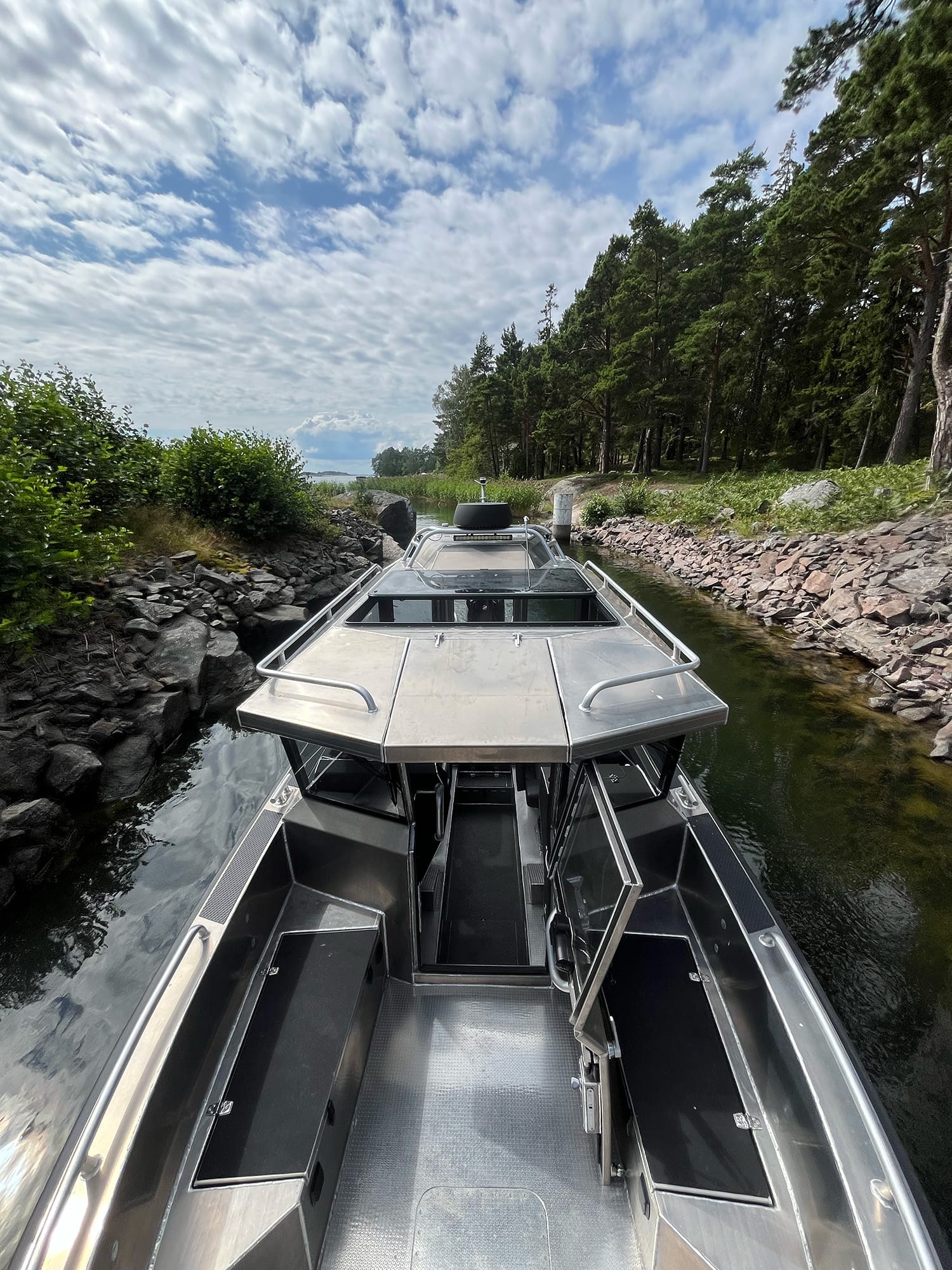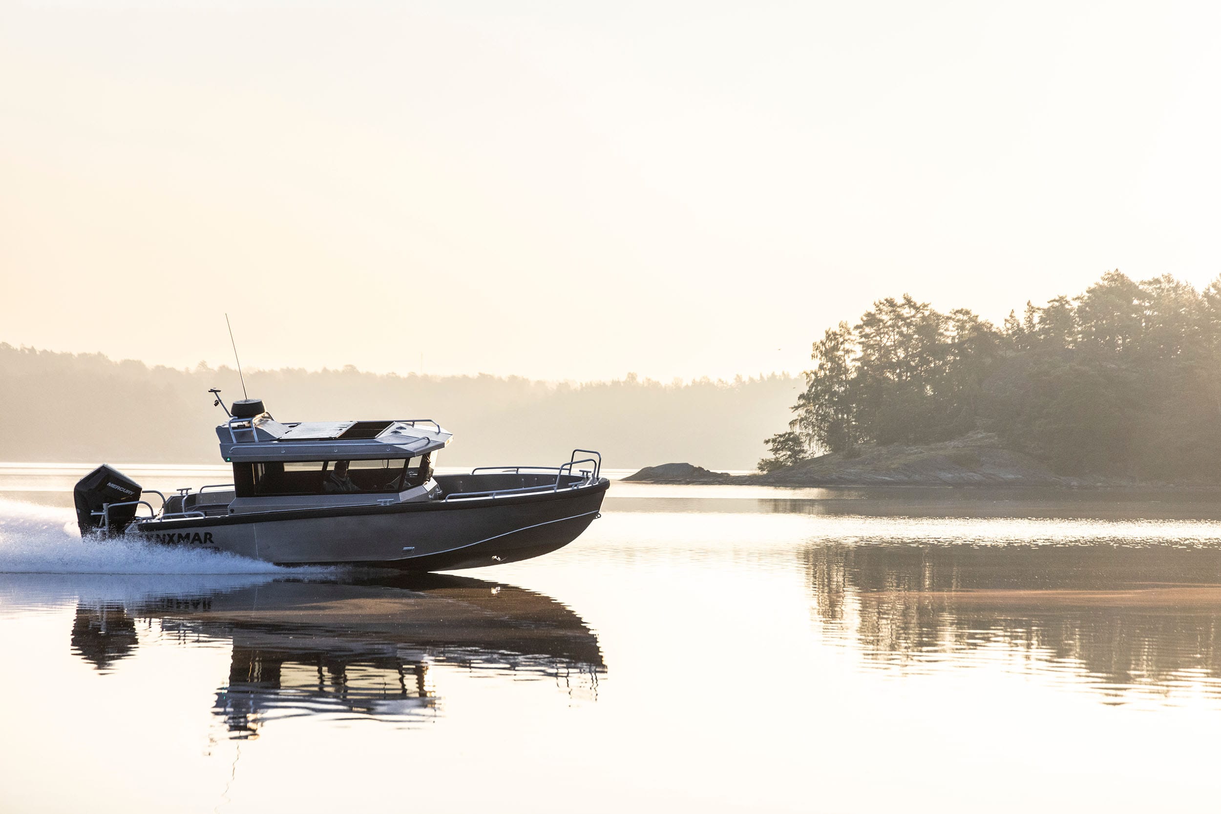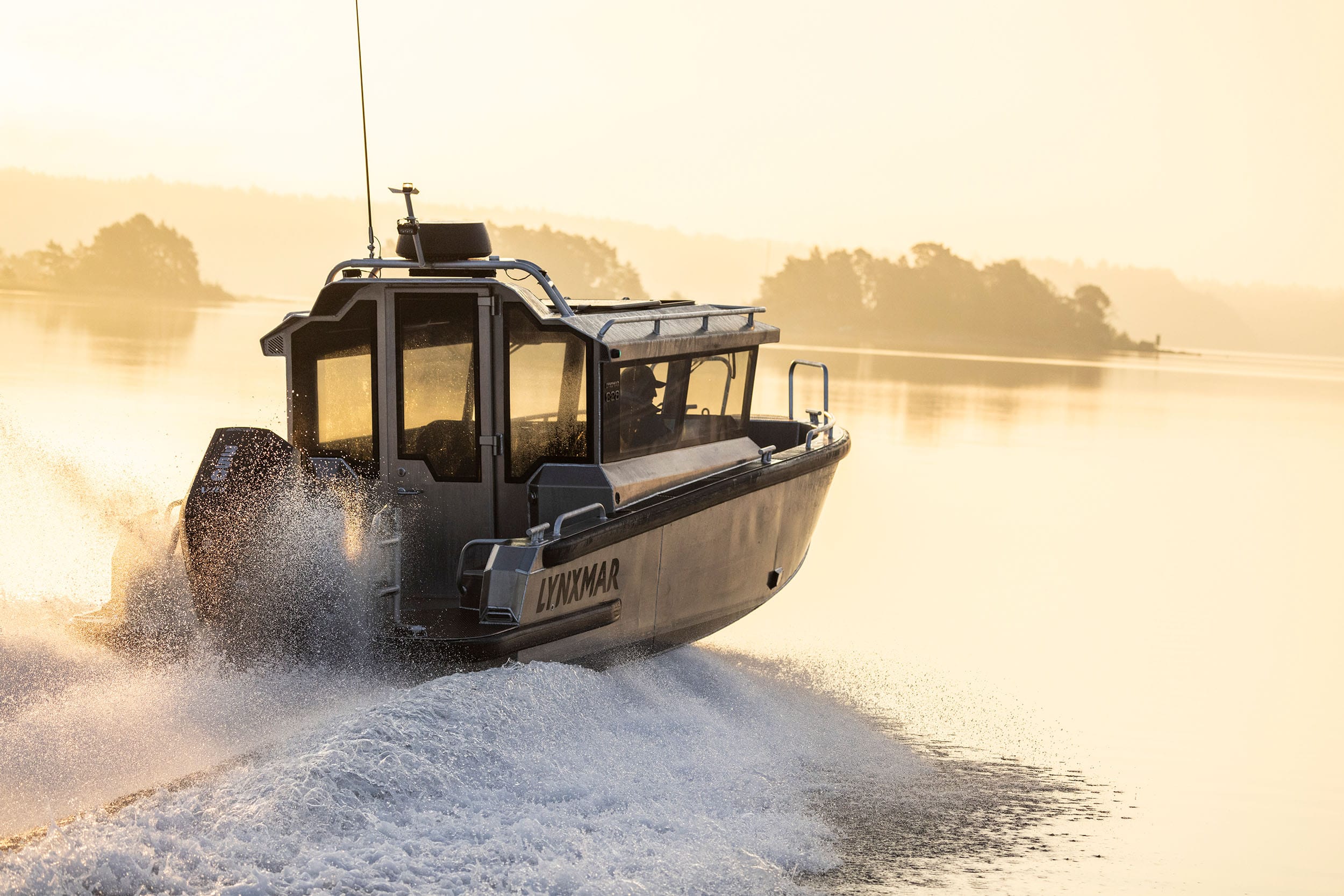 Lynxmar C26 är en kombination av styrka och genomtänkt design. Skrovet är helsvetsat i marinaluminium och fyllt med cellplast för extra säkerhet, vilket gör båten osänkbar och ger en tystare gång. Hydrodynamiken är optimerad med CFD-simuleringar för stabilitet och effektivitet i grov sjö. Runt hela båten löper en kraftig fenderlist på 125 mm som skyddar vid tuffa förhållanden. Akterdäcket är rymligt och lättillgängligt, med en stor plattform för enkel ombordstigning. Funktioner som soltak i fullbredd, öppningsbar framdörr i två delar och stora skylights ger ljus och ventilation. Motoralternativ upp till 425 hk ger imponerande prestanda, och med bogpropeller och ankarspel som standard är manövreringen enkel även i trånga hamnar.