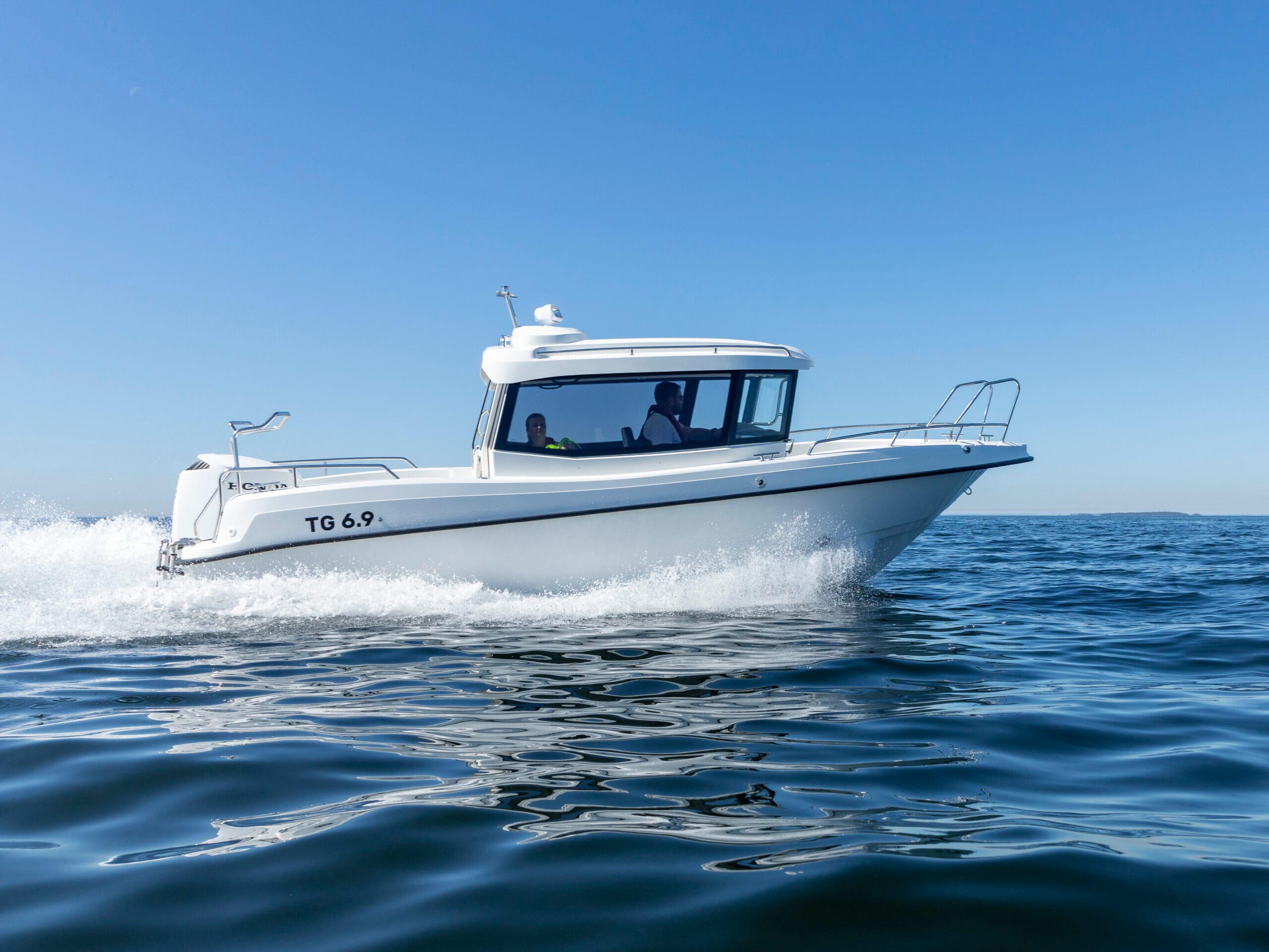 TG 6.9 är en mångsidig och rymlig kabinbåt som passar både familjeutflykter och praktisk vardagsanvändning. Den kombinerar komfort med robust konstruktion och är en favorit bland fritidsbåtsägare.