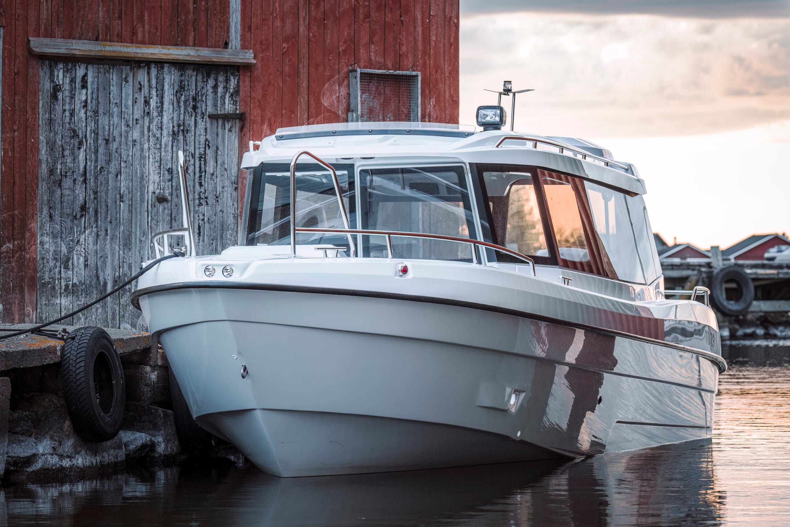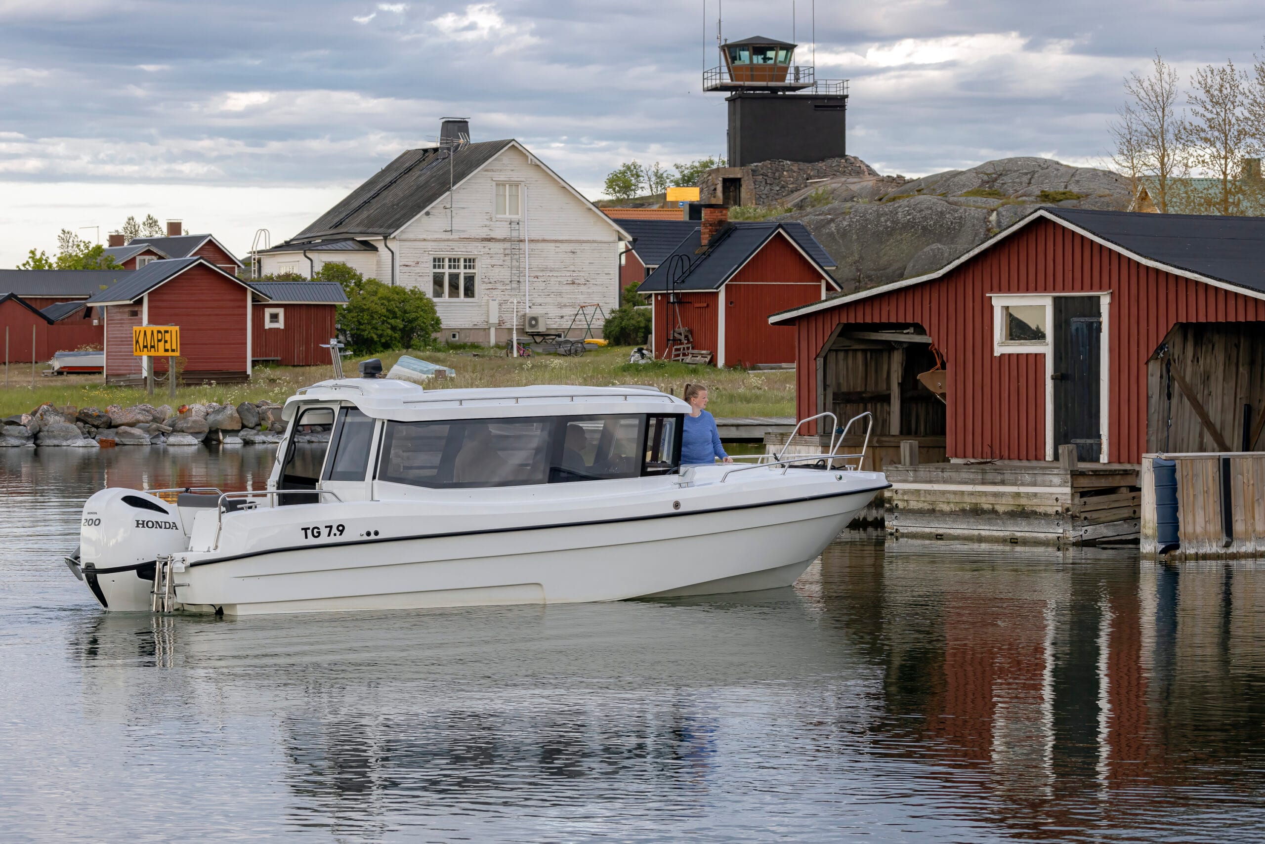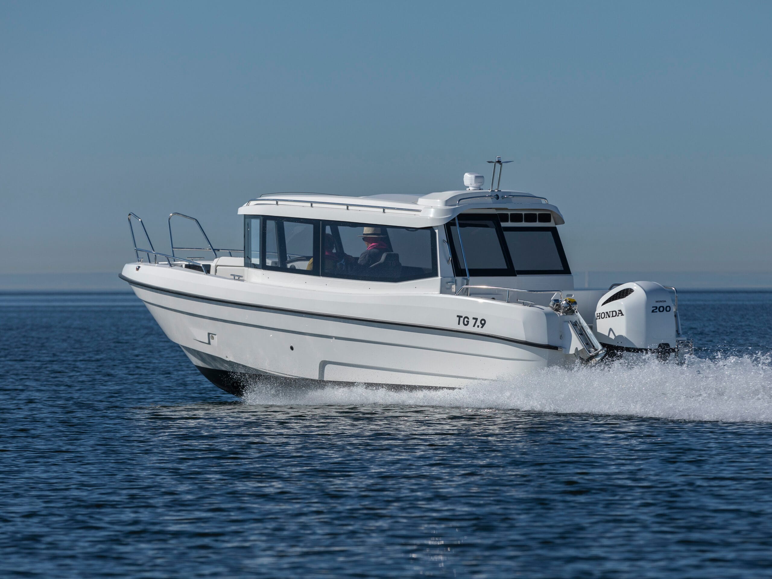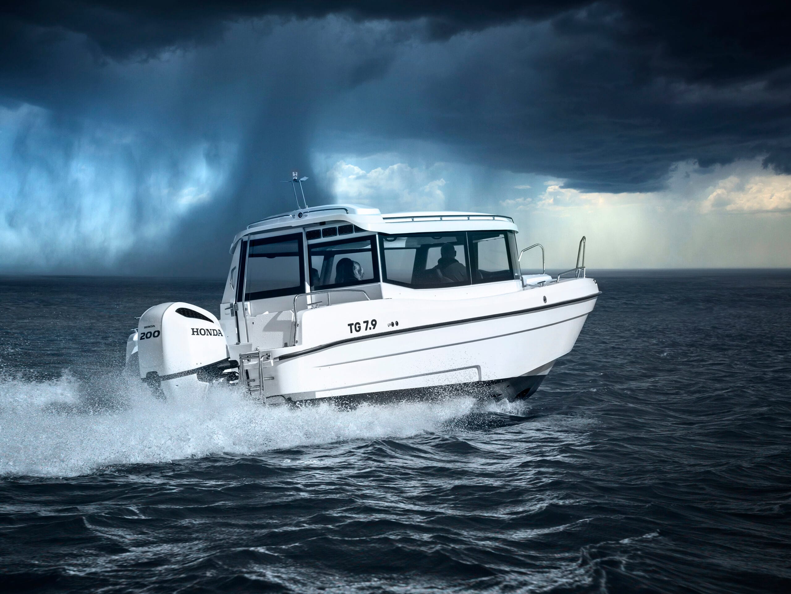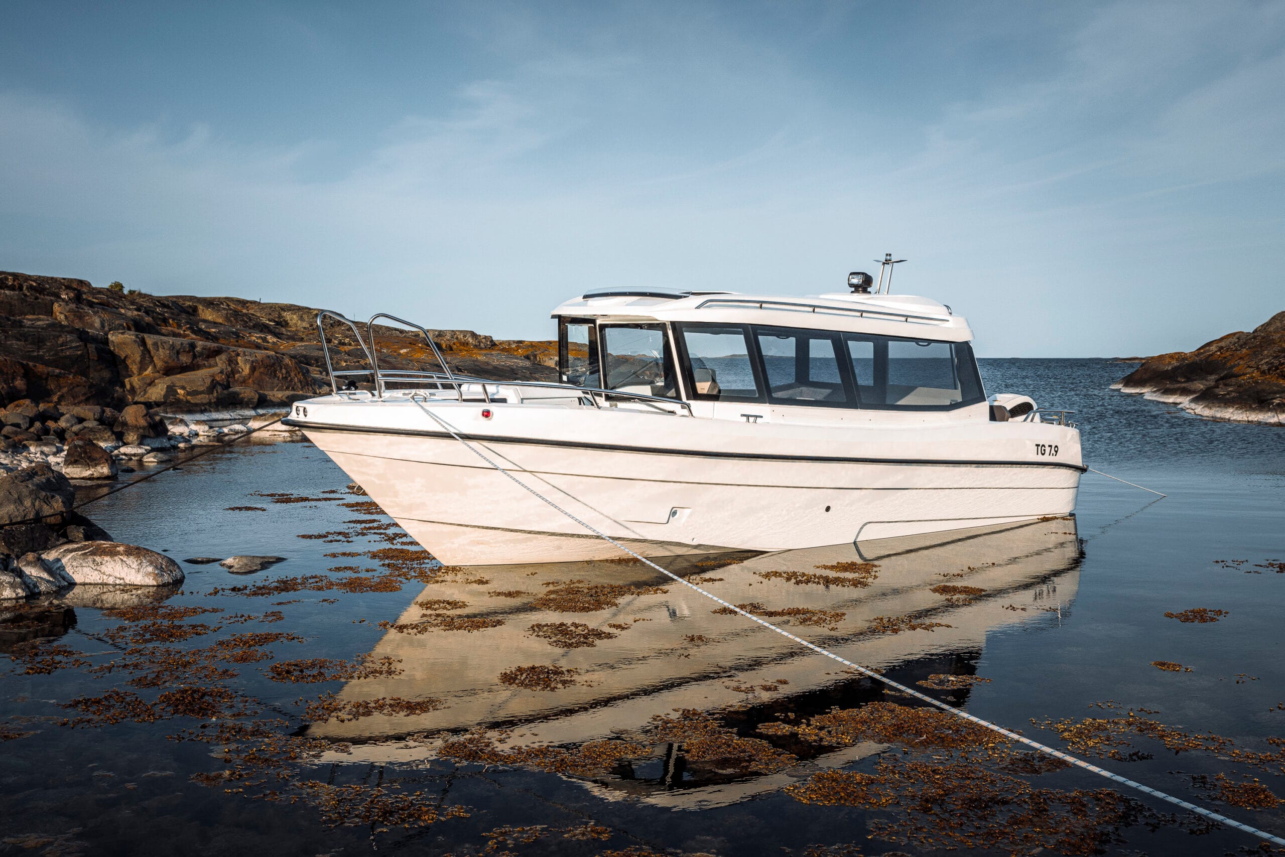 TG 7.9 är en premium hyttbåt med övernattningsmöjligheter, WC och pentry. Perfekt för längre turer och weekendäventyr. Den är byggd för nordiska förhållanden med isolerad kabin, värmare och smarta lösningar för både dag och natt.