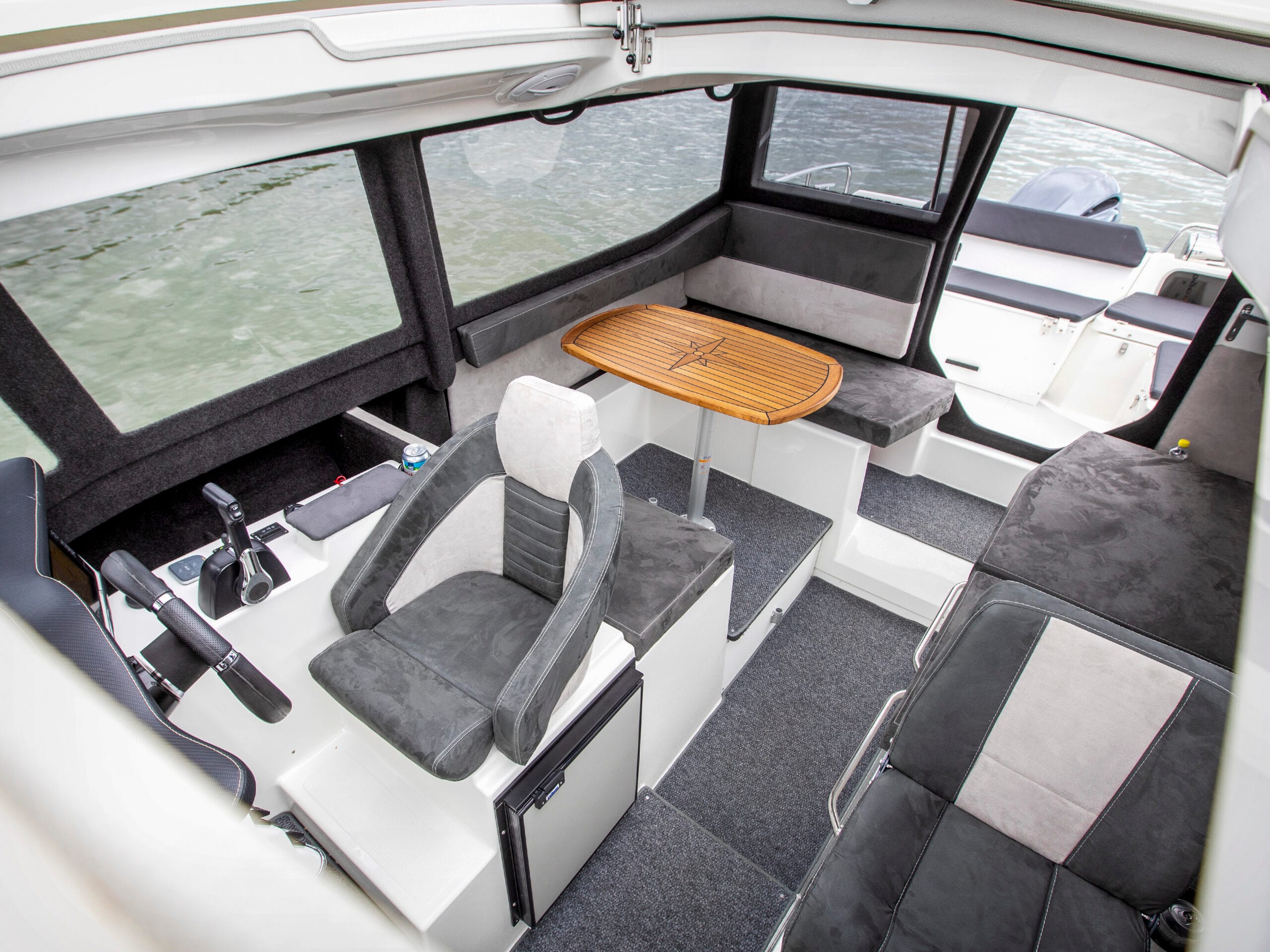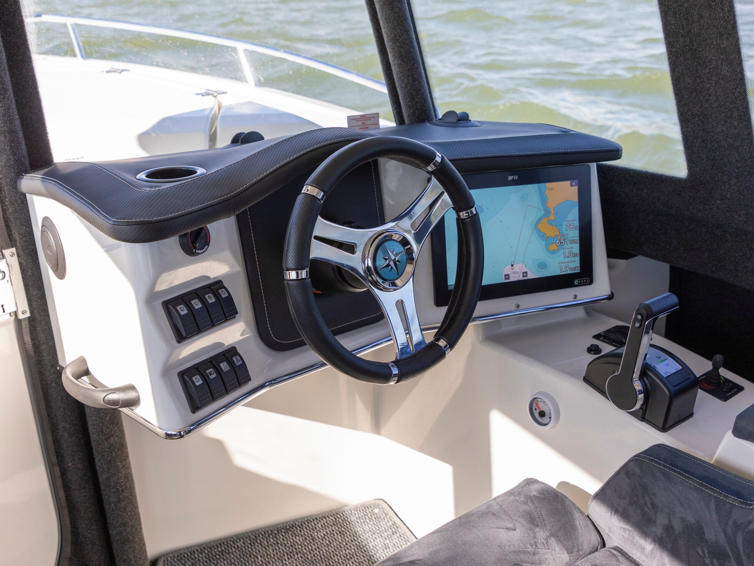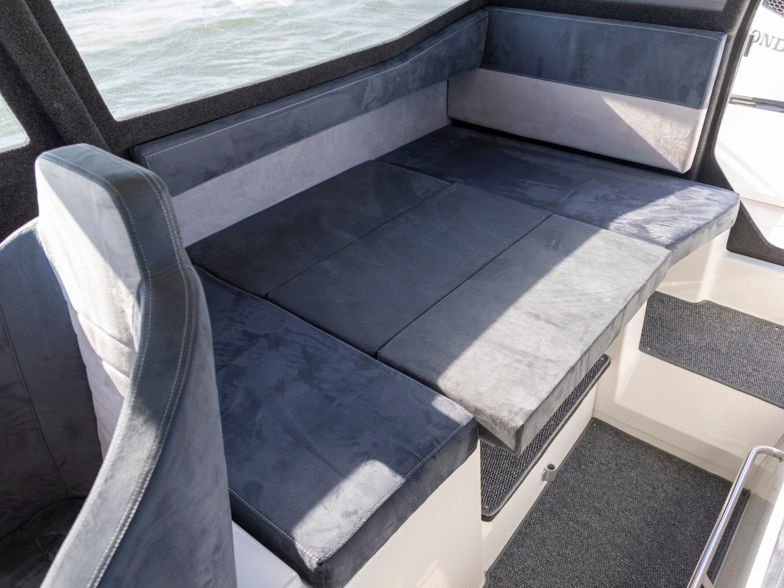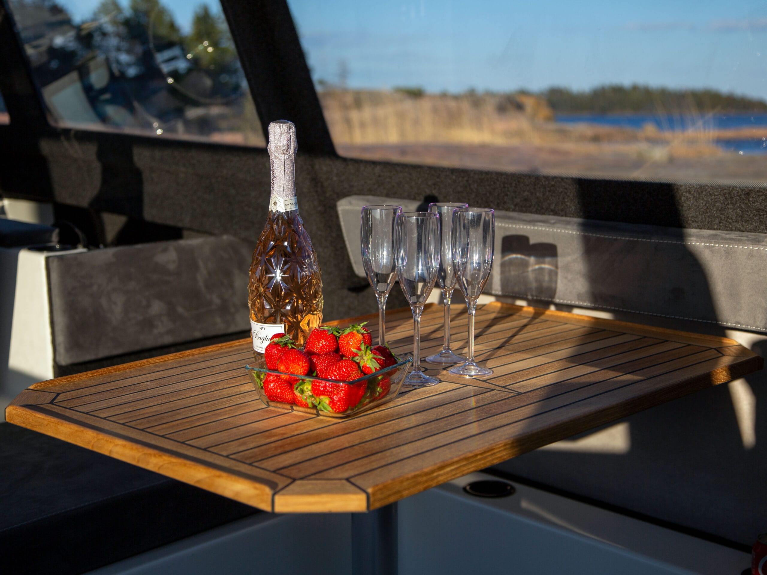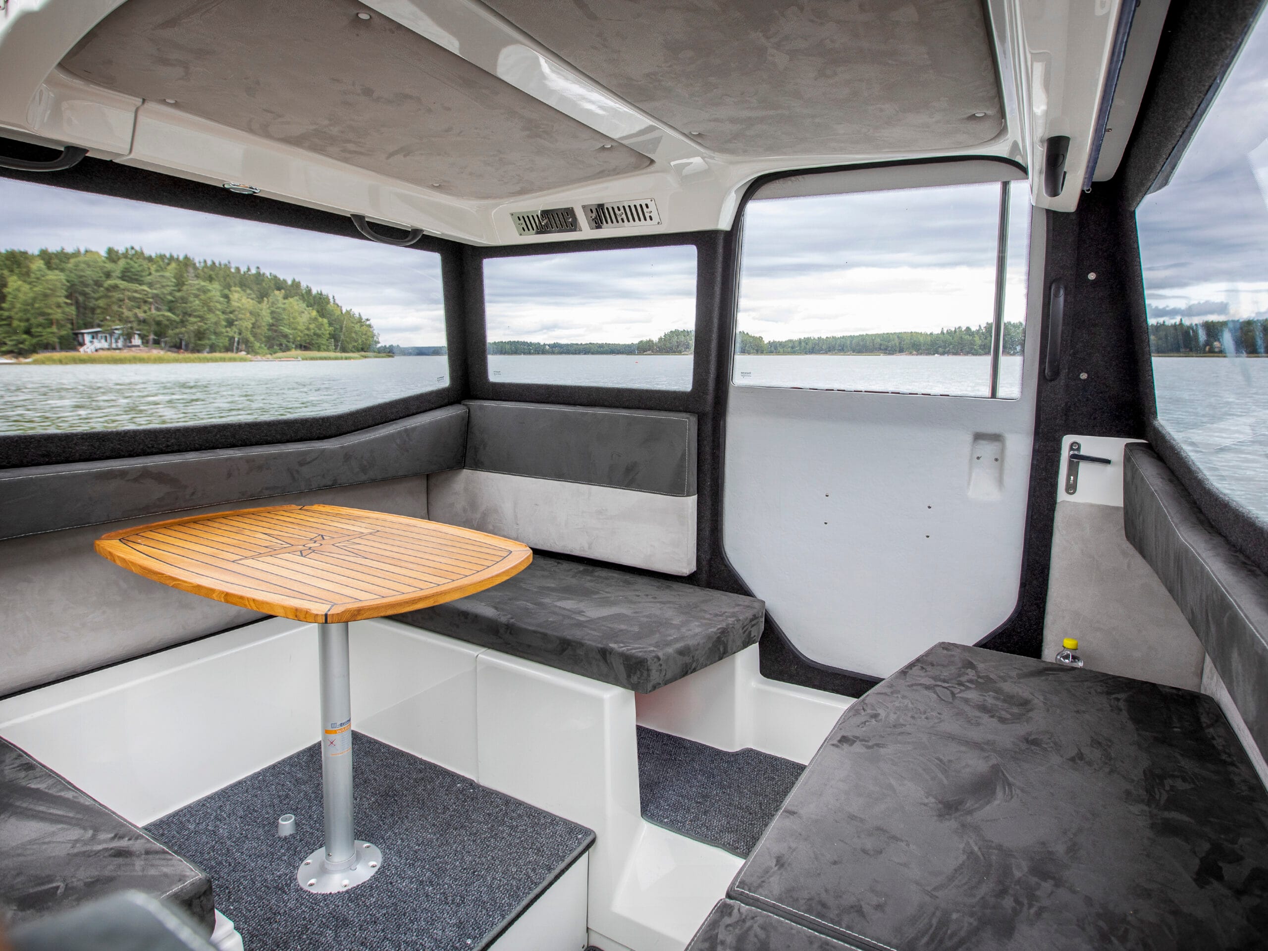 TG 7.9 är en premium hyttbåt med övernattningsmöjligheter, WC och pentry. Perfekt för längre turer och weekendäventyr. Den är byggd för nordiska förhållanden med isolerad kabin, värmare och smarta lösningar för både dag och natt.