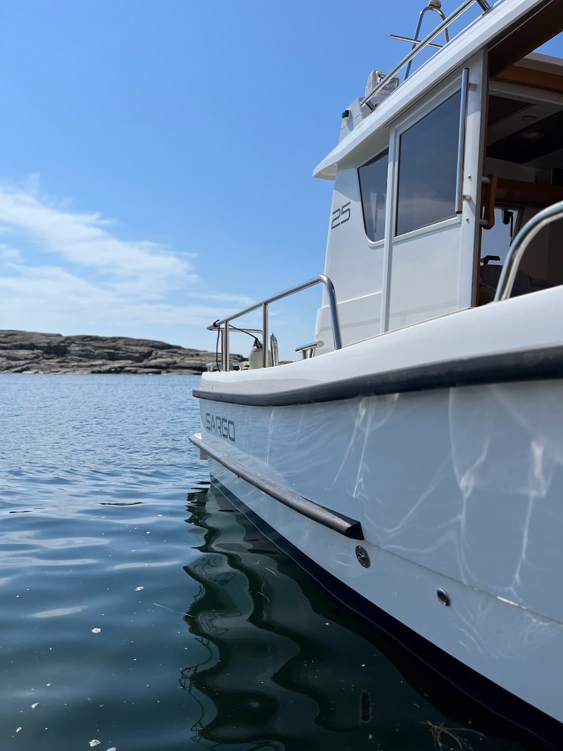 Dykning eller hummerfiske? Skärgårdsjeep eller familjesemester? Sol och bad eller sjöpendling? Sargo 25 klarar det mesta och är stor nog för fyra att övernatta och smidig nog för trånga hamnar och ensamturen.