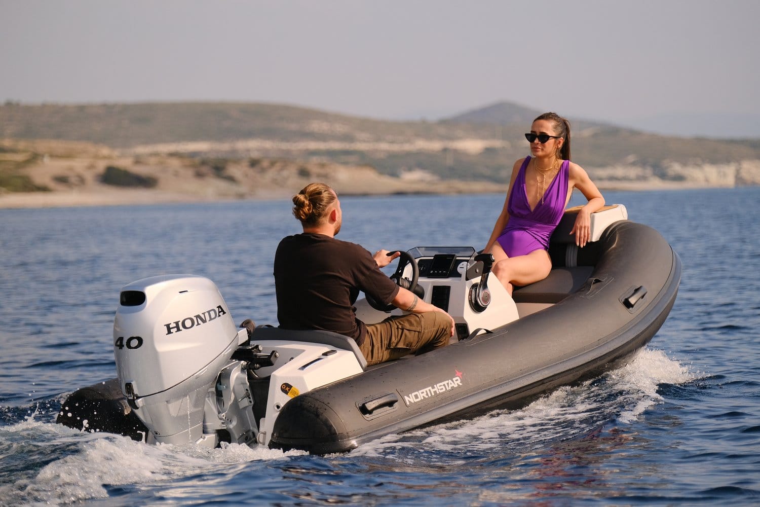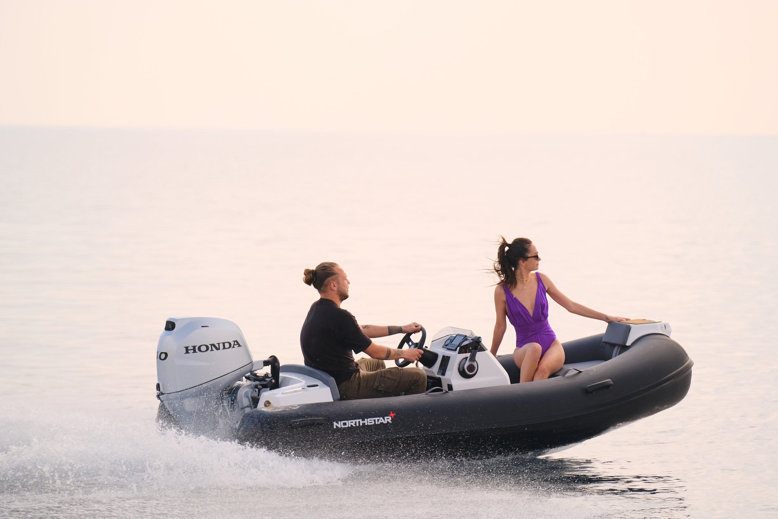 Northstar håller väldigt hög kvalitet med fina material och genomtänkt ergonomi. Båten har hög standard med bland annat hypalontuber, hydraulstyrning, komplett dynpaket, integrerad bränsletank, popup-pollare i rostfritt, automatisk länspump, lanternor samt USB-uttag i vattenskyddat förvaringsfack som standard. Ordinarie pris på denna modell är 3995 kr / mån.