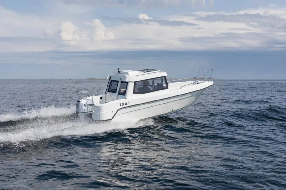 Nya TG-6.1är en uppgradering av den så uppskattade TG-5.9. TG-6.1 har en hytt med god sjöutsikt i alla riktningar och sittplatser för 6 personer inomhus och fyra personer på fördäck. Båten har övernattningsmöjlighet för 2 personer.